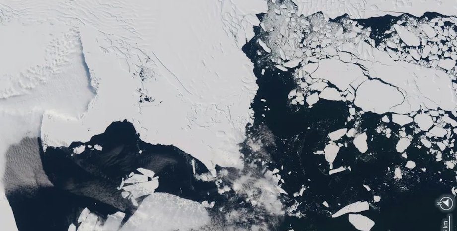 Снимок из космоса ледника Туэйтса в Западной Антарктиде, который подвергается воздействию сотен…