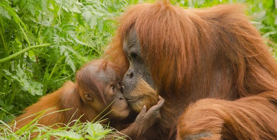 Орангутаны — одни из многих приматов, которые не могут устоять перед поцелуем…