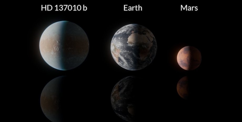 Сравнение размеров планеты HD 137010 b с размером Земли и Марса |…